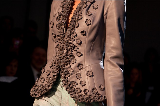 On aime aime ses silhouettes de jeunes filles, vêtements ajustés, courts, dynamiques et pleins d’élan. On est guère étonné d’entendre que le créateur cite deux films de Sofia Coppola, Virgin Suicides (pour la pré-collection présentée chez Maria-Luisa la saison précédente) et Marie-Antoinette (pour cette collection Couture). Ces tenues iraient à merveilles aux jeunes héroïnes un brin « décalées » dans leur tête, de la réalisatrice.