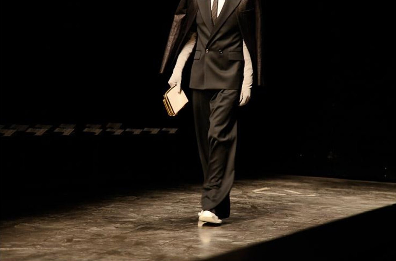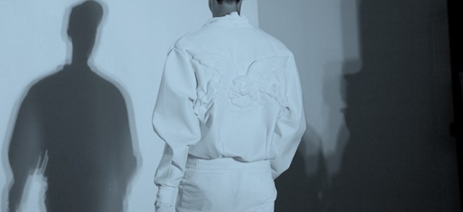 LES TENUES IMPRIMÉES « 3D » DES HOMMES DE JEAN-PAUL GAULTIER (À VOIR AVEC LES LUNETTES ADÉQUATES!) OU LES IMPRIMÉS « BRIS DE GLACE » DES GARÇONS DE JUUN J. VUS LA SAISON DERNIÈRE.