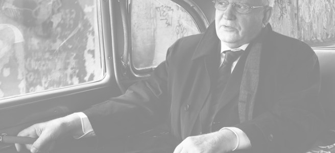 Louis Vuitton, Annie Leibovitz et Mikhail Gorbatchev devant le mur de Berlin.