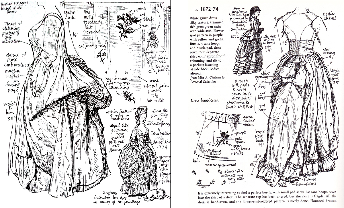 – « The cut of women’s clothes, 1600-1930. », publié en 1968, auteure Norah Waugh, fait référence parmi les costumiers