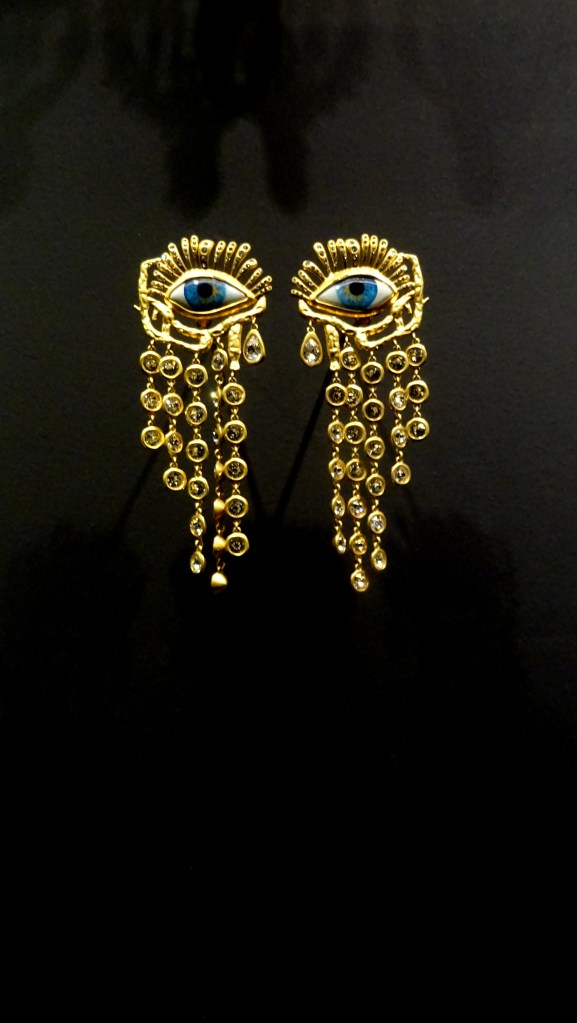 AU CŒUR DE L’EXPOSITION SUR ELSA SCHIAPARELLI, ON S’IMAGINE SOMBRER DANS LES MÉANDRES D’UN TOMBEAU ANTIQUE DONT LA DÉFLAGRATION LUMINEUSE DES ORS NOUS RÉVÉLE UN OCCULTE CHIAROSCURO.