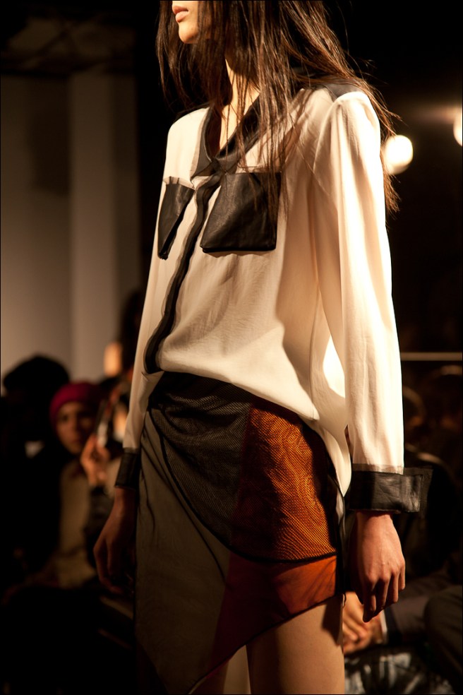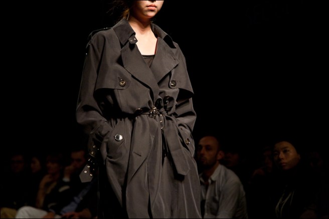 Dark and noisy music on the runway, in contrast, walking in line, girls were wearing fluid and transparent clothes. Using mainly silk this season, the duo were also inspired by the trench coat.