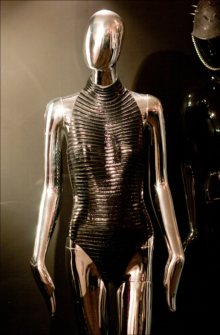 Le style de Thierry Mugler qui a habillé les plus grandes stars des années 80-90, se marie plus qu’aucun autre créateur avec le style détonnant de l’artiste américaine (à voir abso-lu-ment les vidéos du défilé époustouflant de 1995 célébrant ses vingt ans de création ici, ici, ici, ici -au début de cette séquence on y voit le fourreau porté par Lady Gaga-, ici et ici)