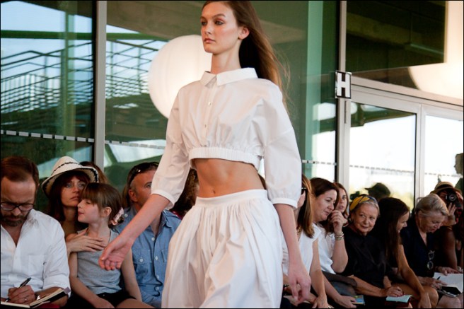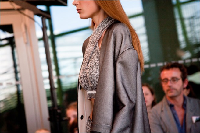 Sitting quietly behind the windows of the Palais de Tokyo, the girls dressed in knittedcotton w/silk came and posed with spare elegance.